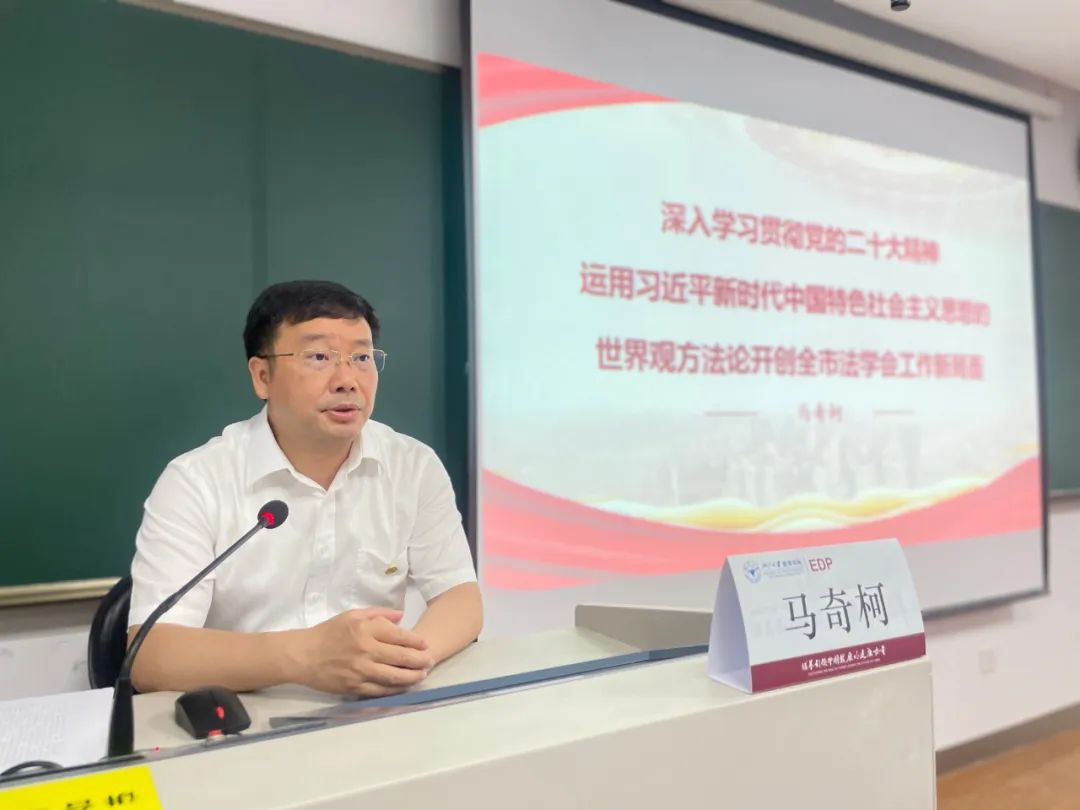 7月17日,重庆市委政法委副书记,市法学会党组副书记、常务副会长马奇柯为“学习贯彻党的二十大精神,着力提升重庆市法学会系统干部素质能力”专题培训班全体学员作辅导报告。