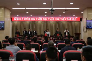 近日,铜梁区法学会召开首席法律咨询专家服务民营企业专项行动工作推进会,宣读首席法律咨询专家聘任通知并为30名受聘专家颁发聘书,通报首席法律咨询专家服务民营企业专项行动开展情况并安排部署下一阶段工作。区委常委、政法委书记,区法学会会长周良华主持会议并讲话。