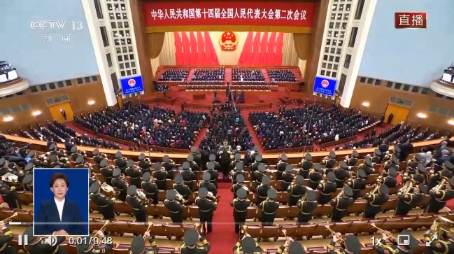 【两会视频】十四届全国人大二次会议开幕 全场高唱国歌
